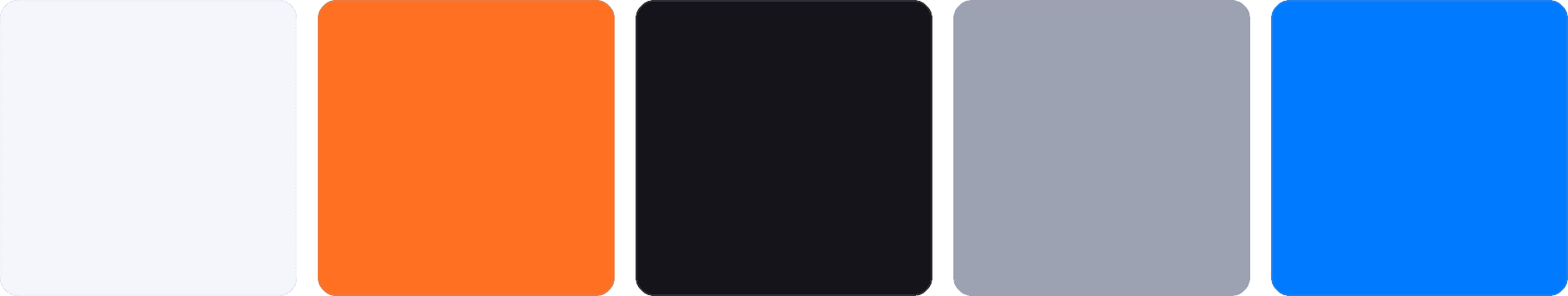 Designed a cohesive brand with orange (#F5A623), black (#1C2526), white (#FFFFFF), gray (#B0B7C0), and blue (#007BFF) palette